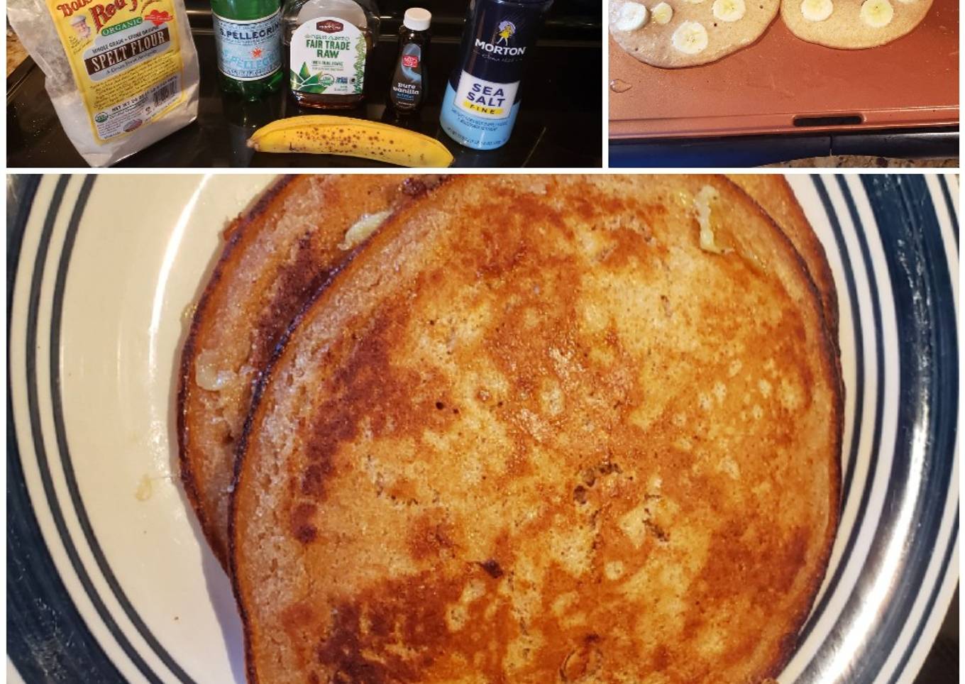 - Transfer cooked pancakes onto a plate, add more fruit if you'd like, and enjoy!! No syrup needed!!