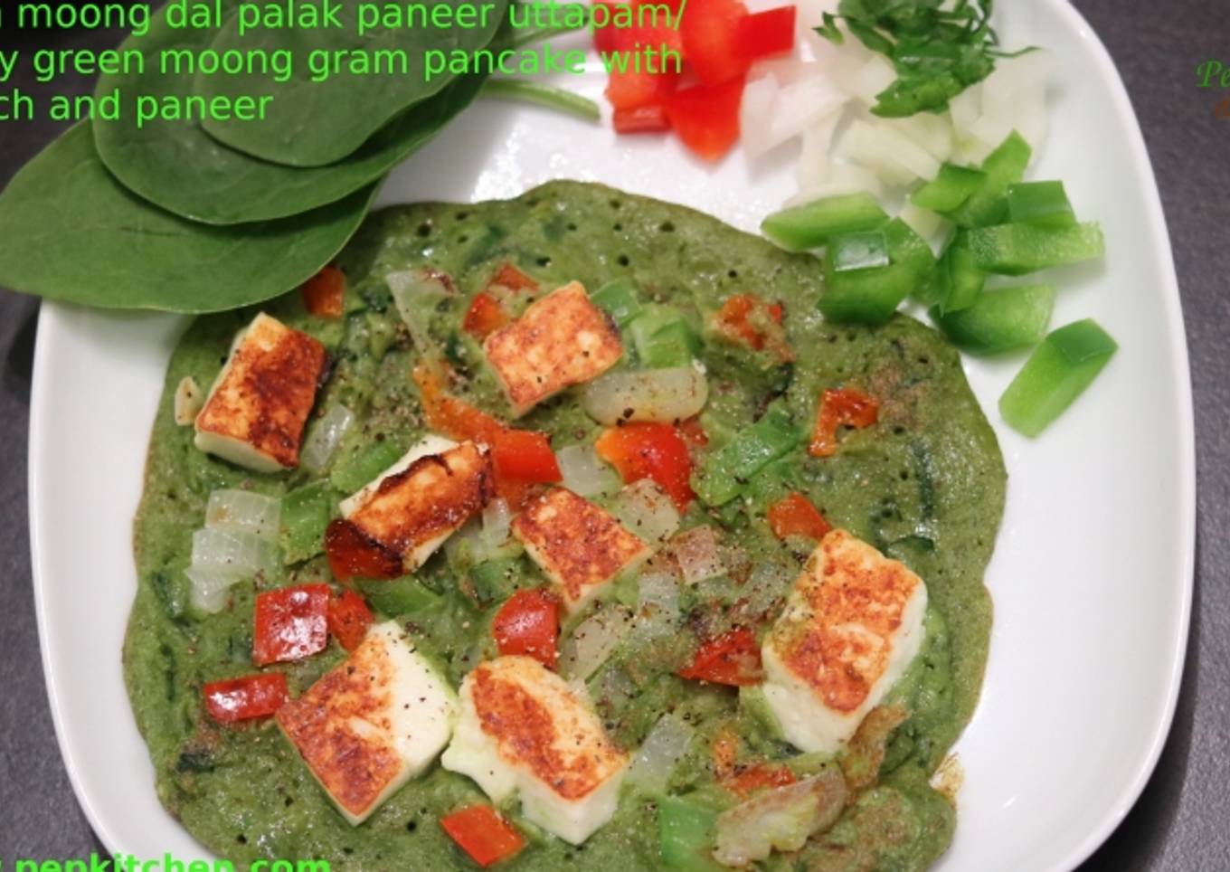 https://pepkitchen.com/recipe/green-moong-dal-palak-paneer-uttapam-savory-moong-pancake-with-spinach-and-paneer/