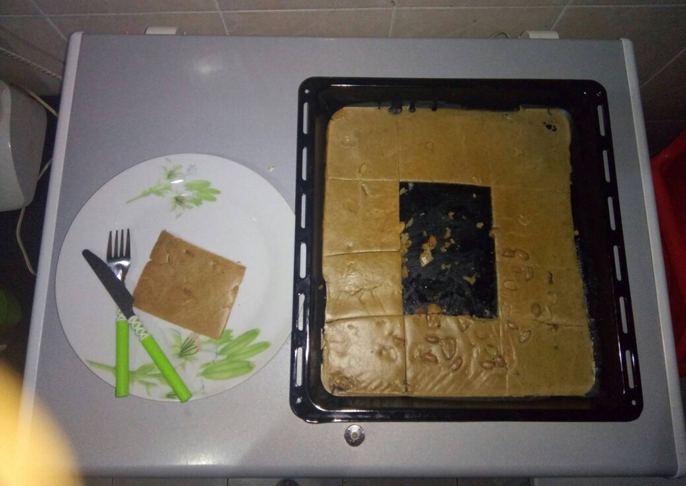 - Seive flour and combine all dry ingredients together and mix up. Beat egg and add up to the flour, add 1 table Spoon butter, and 1/2 cup water.. Using skewer beat well till all lumps dissolves. Use brush and spread butter evenly on the oven tray. Spread the flour mixture evenly and sprinkle the crushed date and gnut. Pre heat oven, when hot put your oven tray and bake for 5- 10 mins.. When done... Cut into desired shape and Spread nutella...enjoy with hot or cold tea