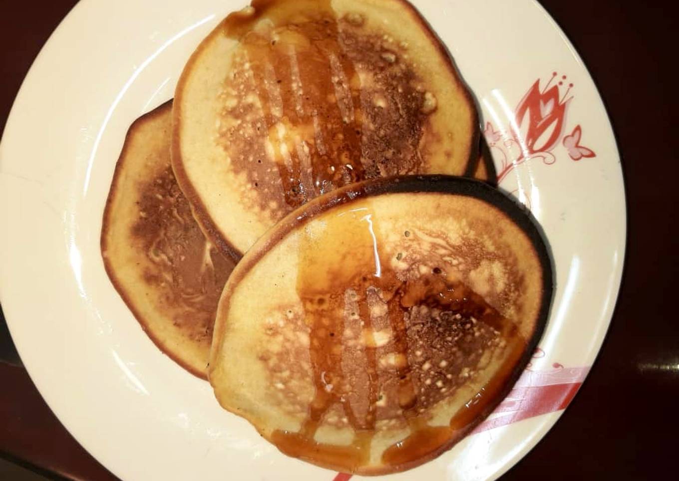 - Put ur non stick pan on heat add in the mixture when it starts forming bubbles u flip it to the other side after a couple of minutes use tooth pick to pinch the pancake if it comes out clean then its done then remove from heat & repeat the process until the batter is finished. Then sprinkle honey & servešš