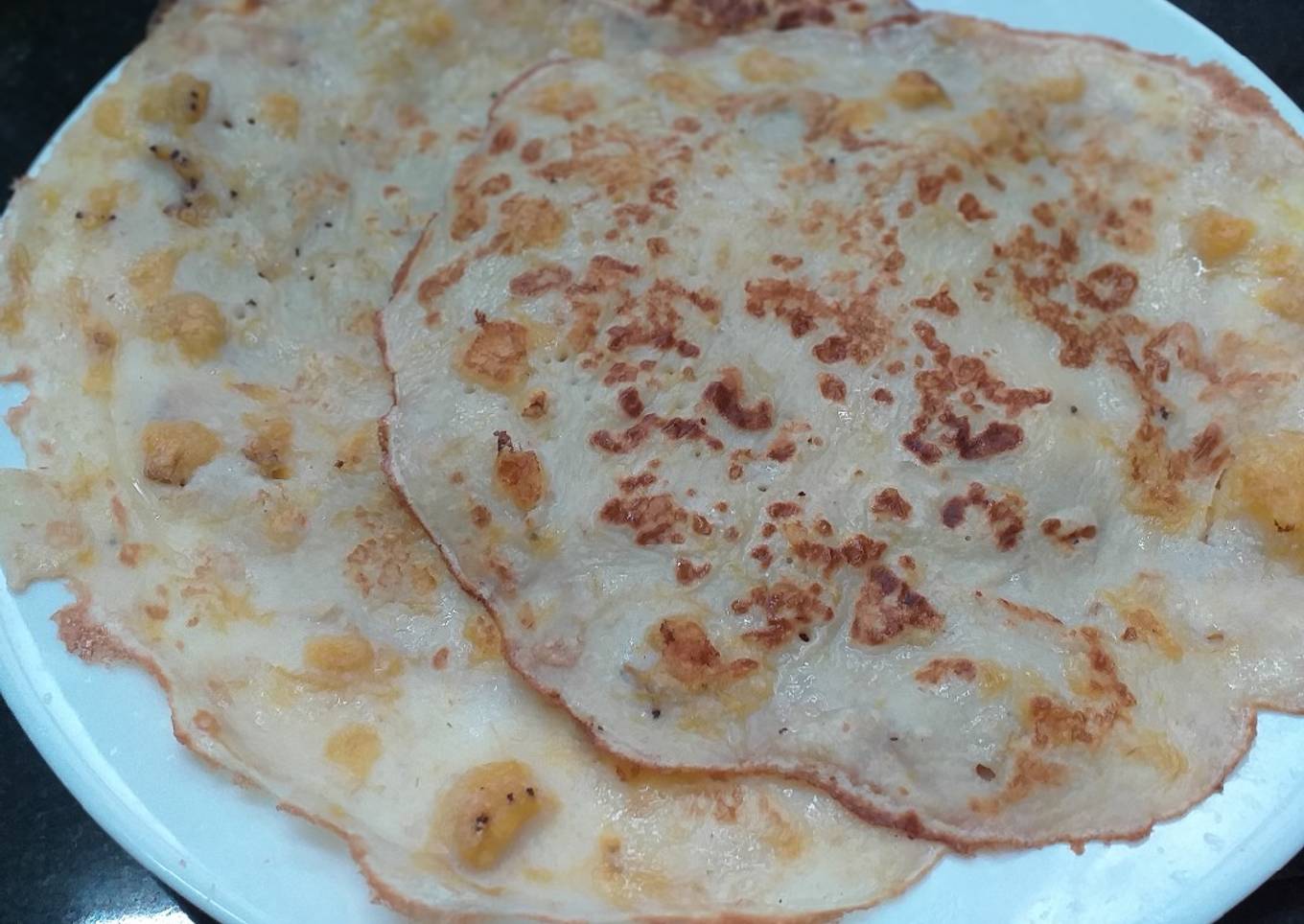 - Heat a nonstick pan and drop a spoonful of batter let it cook till brown in one side and turn cook the other side