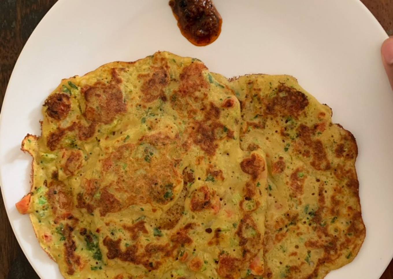In India, they call it besan cheela which is made using finely ground chickpea flour otherwise known as gram flour. I happened to buy some chickpea flour here in one the stores from a local brand. I added some grated vegetables to the batter and tried to make these similar to cheelas and they turned out so delicious that I couldn’t wait to share the recipe. These pancakes are so healthy and delicious. And needs no side really! #chickpeaflour #worldpulseday #chickpeas #chickpeapancakes #savourypancakes