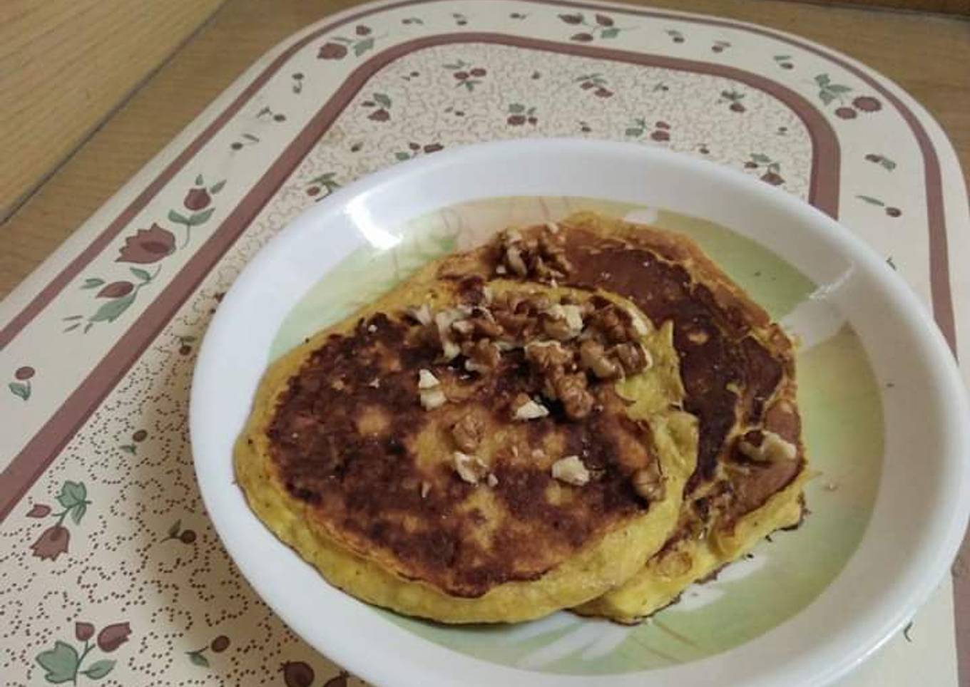 - Blend all ingredients well and make pancakes in non stick pan.
