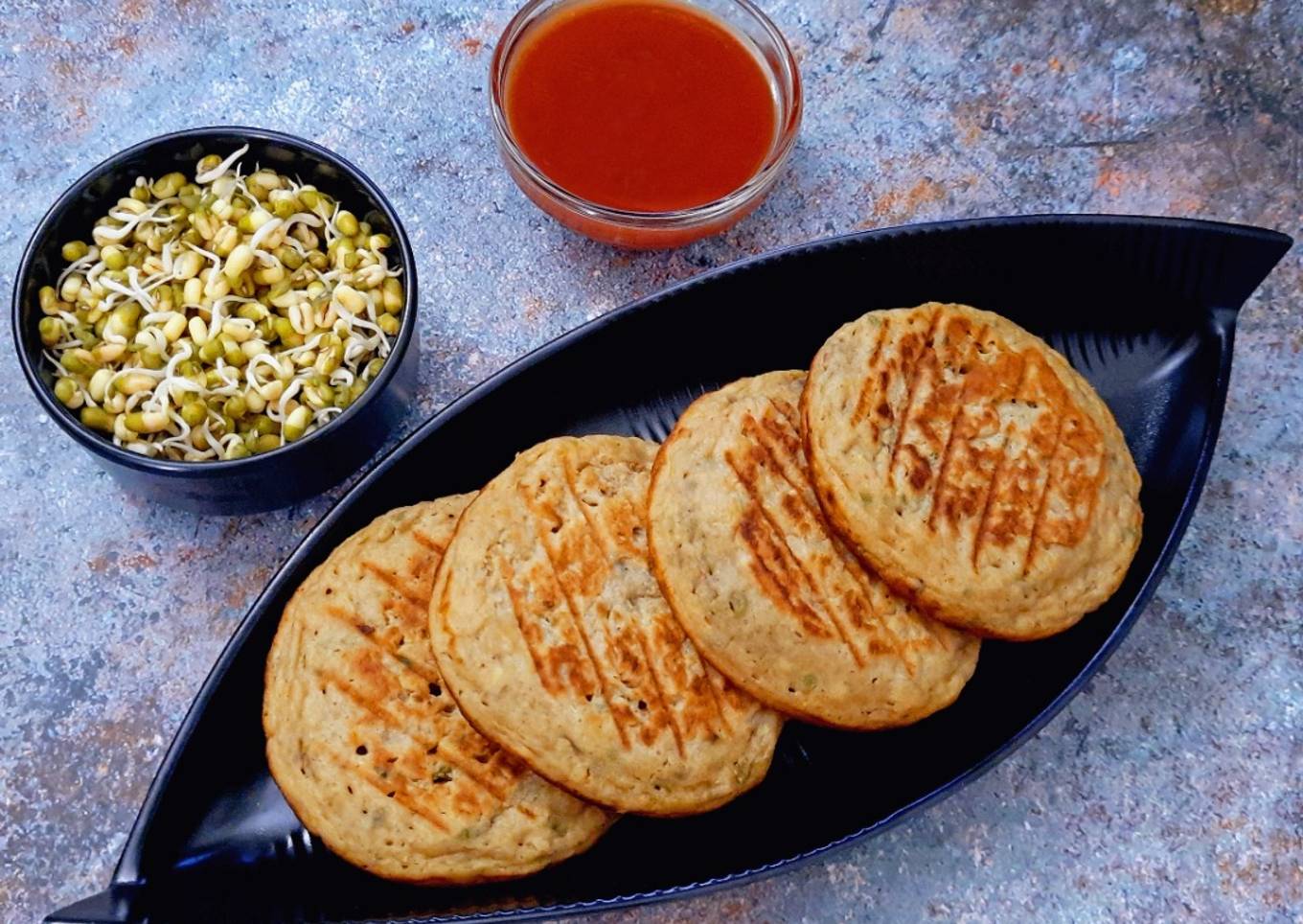 - The Savory Moong Sprouts Pancakes are ready to serve. Serve them hot with a dip of your choice.