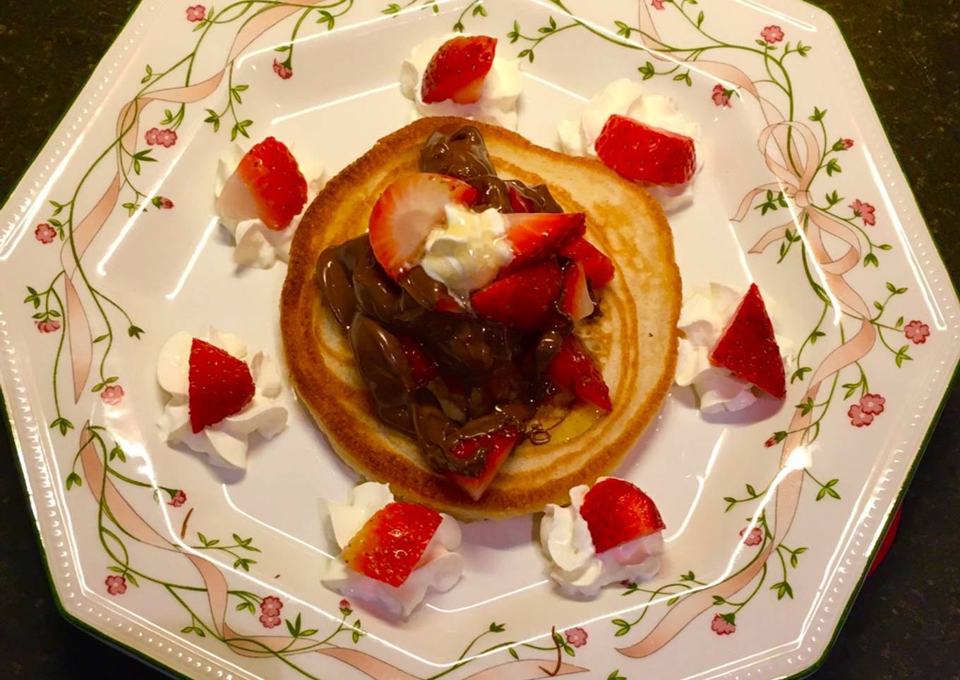 Serve warm, with desired topping such as maple syrup, fresh berries,banana slices, ice cream or whipped cream.