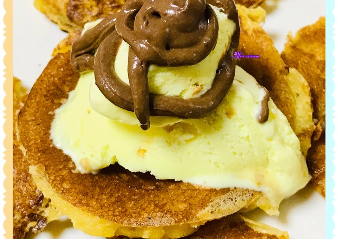 - Gradually prepare all in similar fashion.add the garnishing with dollop of ice cream & drizzle chocolate over it.Our delicious blender pancakes are ready …!