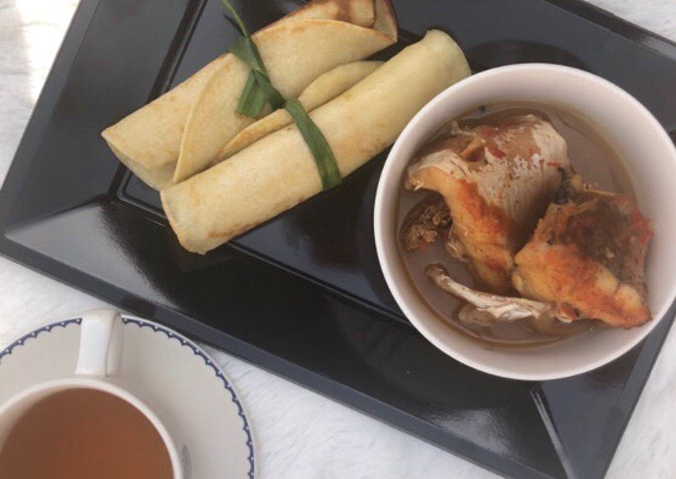 Instructions to make Pancake roll with fish pepper soup