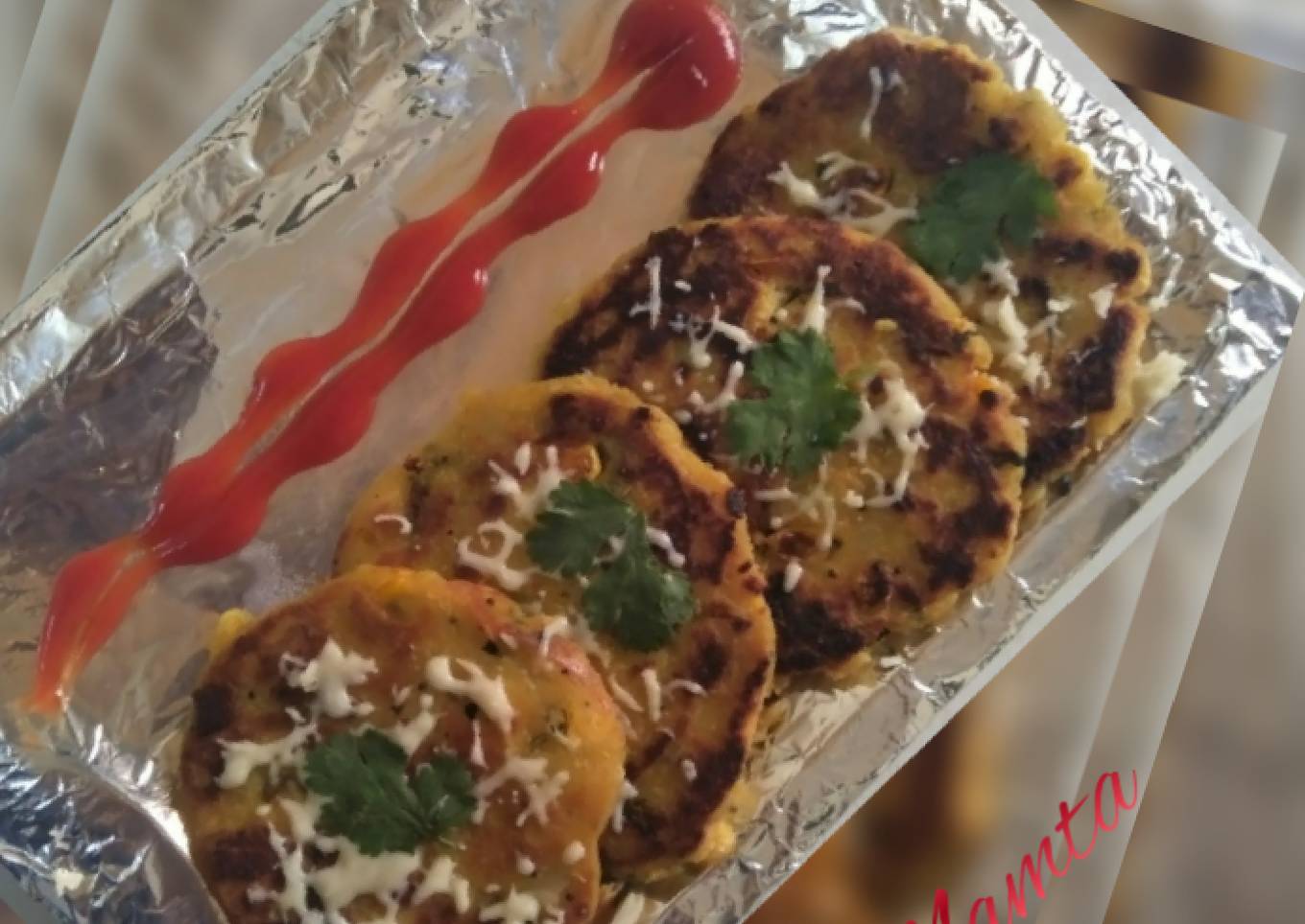 Cheezy potato pancakes made from leftover aalo parantha masala...Kids favourite...
