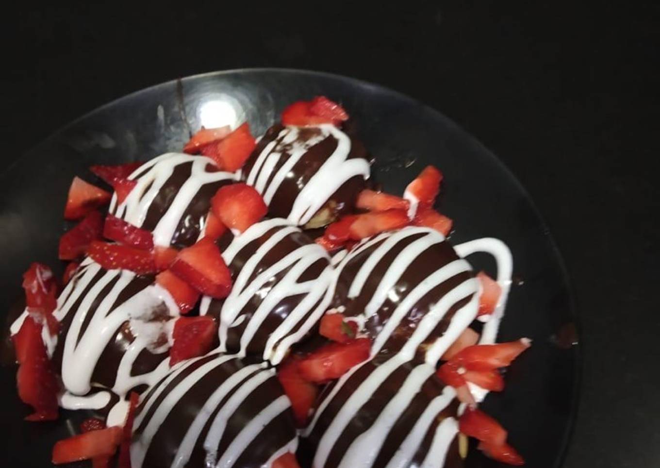 - Put pancakes in plate and put nutella on it and decorate with cream and strawberries