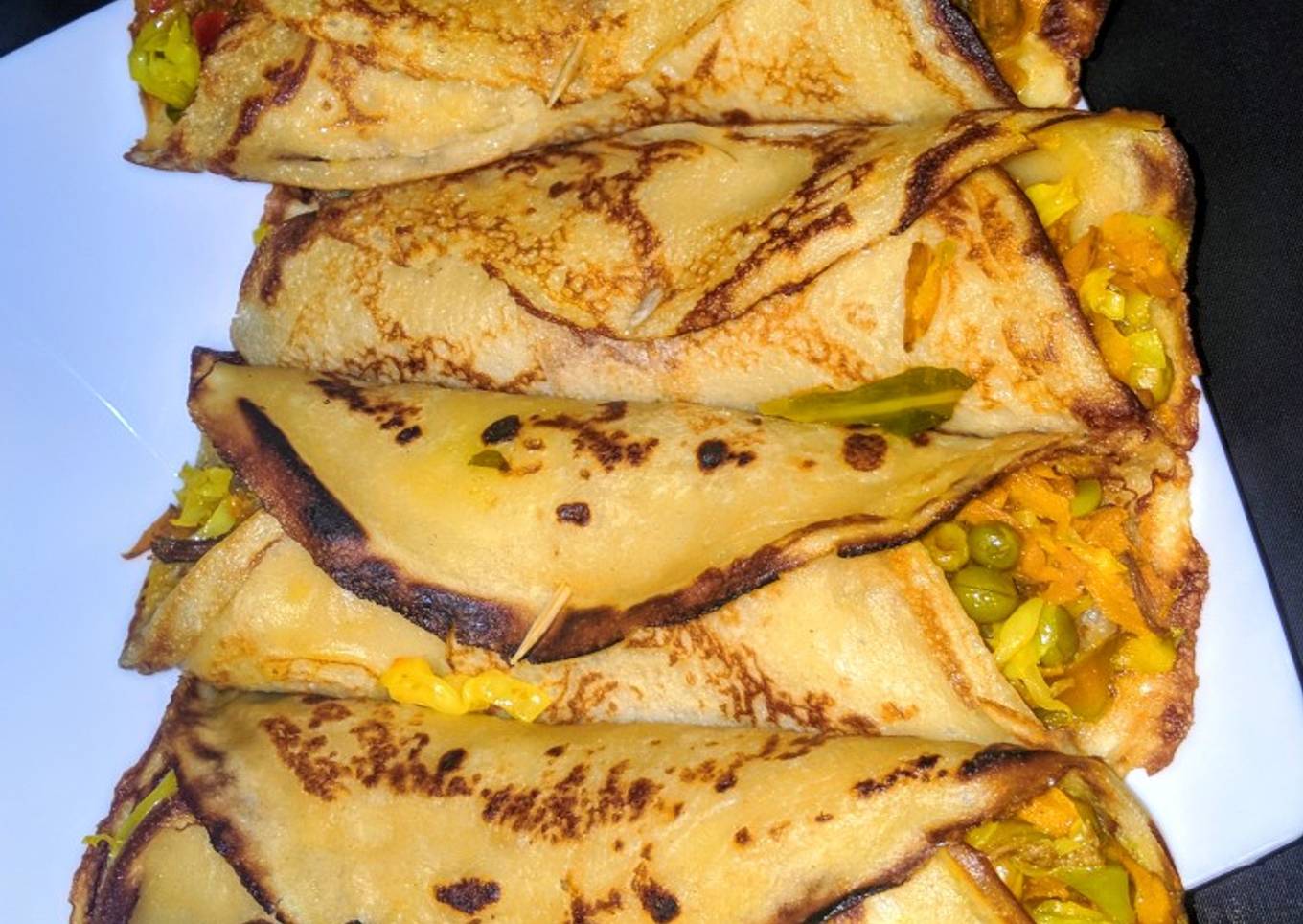 - Lay pancake wrap and fill with the veggies mixture. Roll and wrap tightly then hold with a toothpick.
