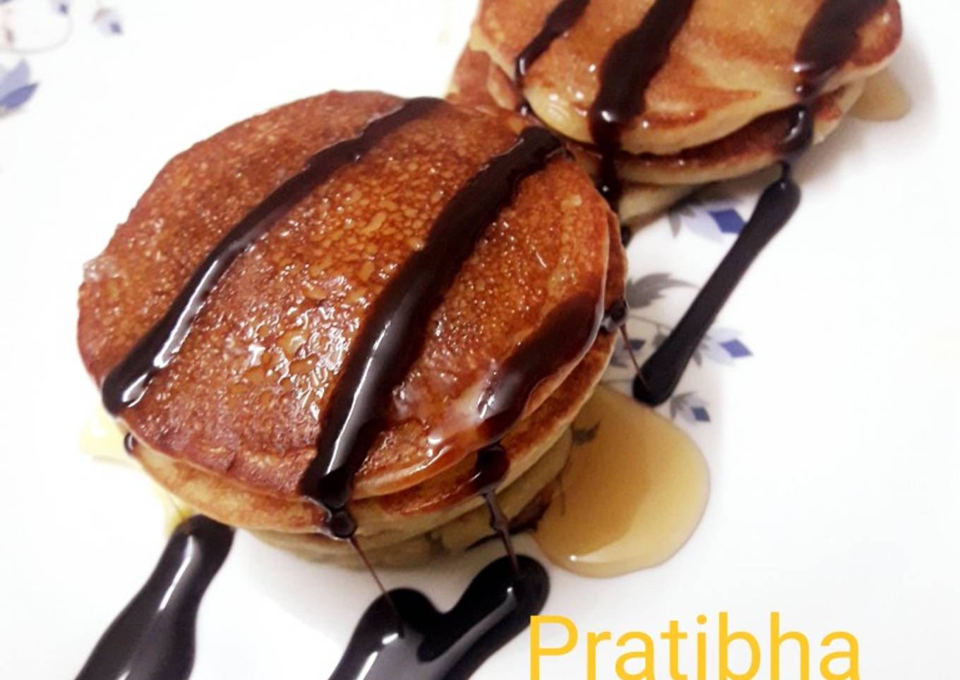 - Now golden colour pancakes is ready for serve. Decorate with butter, honey & chocolate syrup.