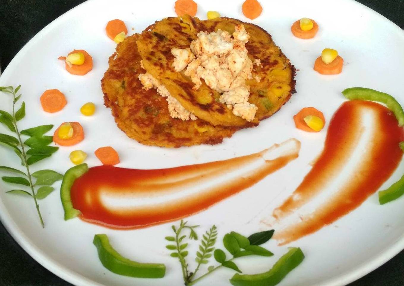 - Put this masala paneer over pancake and served with Ketchup.