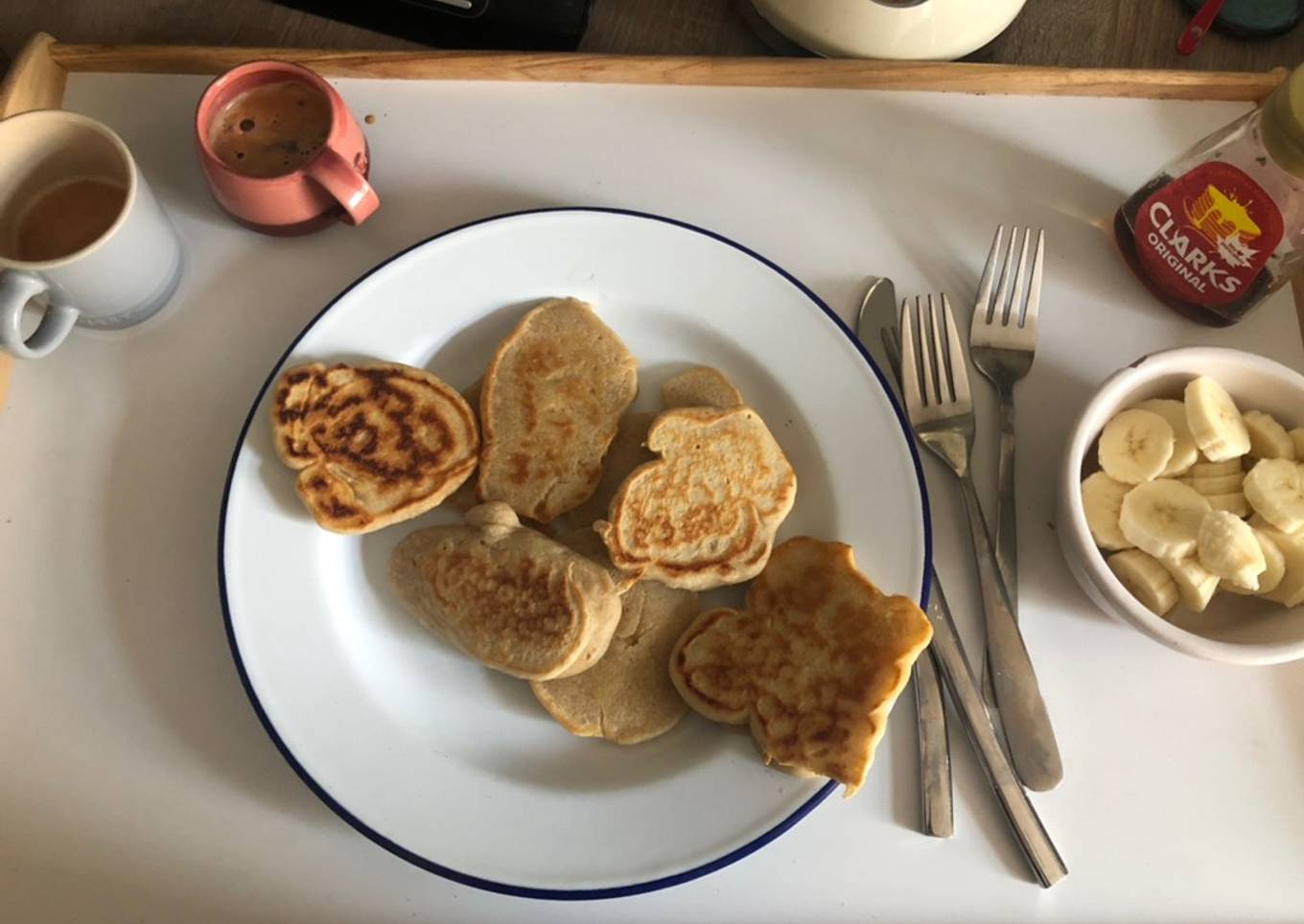 We’ve run out of eggs and bread so breakfast options are harder to come by. I’m reluctant to have cereal because it uses up too much milk so here are some eggless pancakes that use much less milk than normal pancakes.
