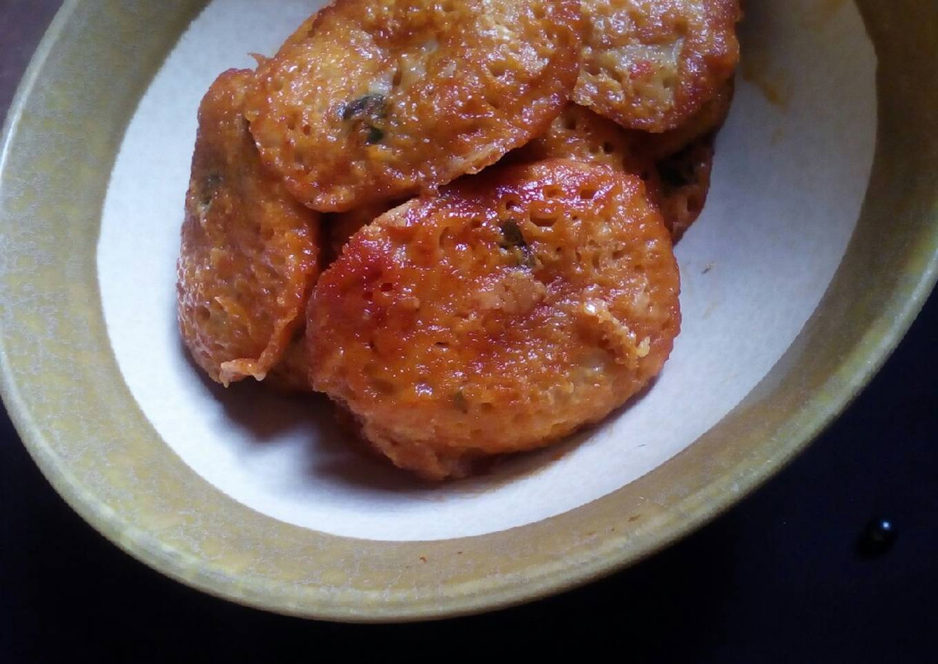 - Sieve flour in a bowl, add grinded hot pepper and onions