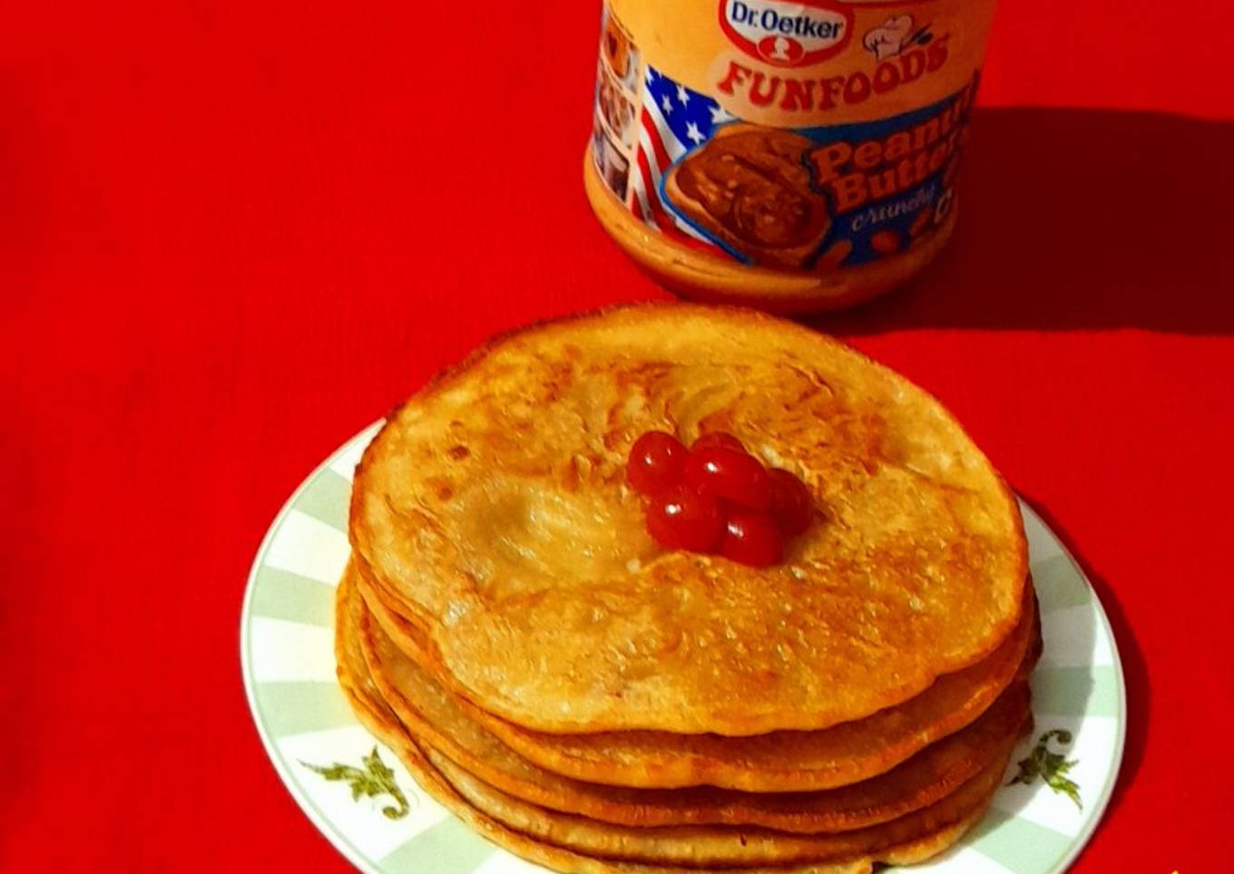 - Enjoy hot eggless peanut butter pancakes as breakfast.