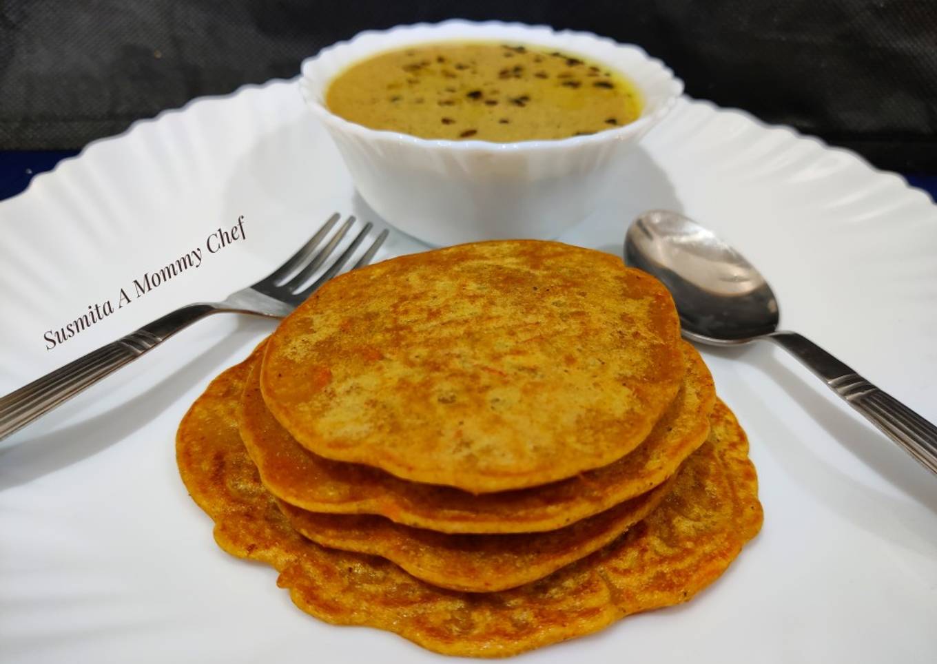 Instructions to make Savoury pancakes (wheat flour - carrot pancakes with chutney)