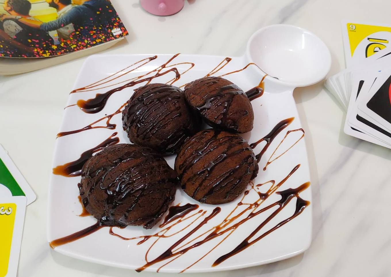 - Once roasted from bother side turn if the flame and transfer it into the serving plate and drizzle some chocolate syrup