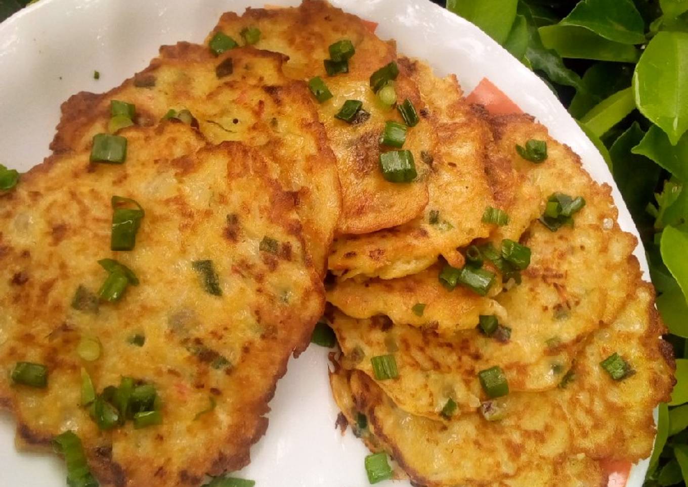 - Add drained potato in a bowl,put chopped onions,spring onion,pepper,salt, baking powder and mix. Pour beat egg mixture and mix thoroughly.